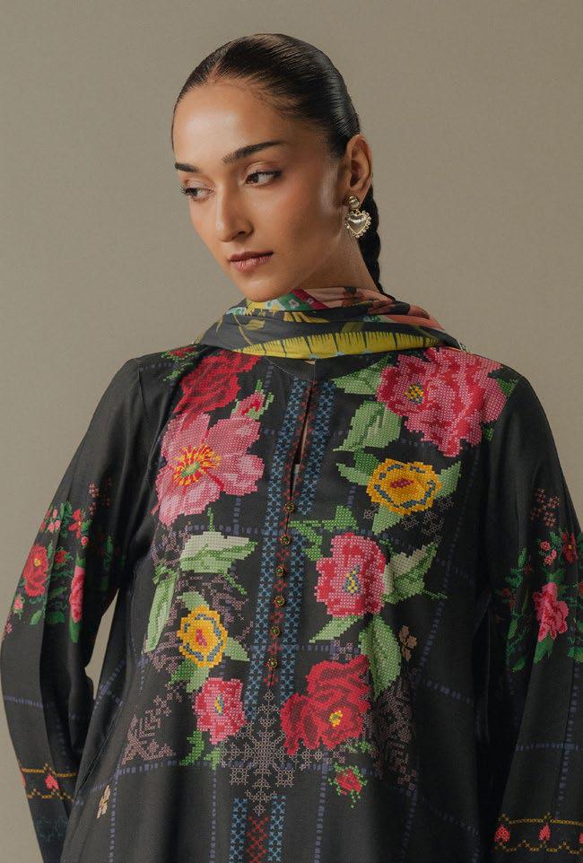 featuring intricate paisley motifs. The ensemble is beautifully tied together with an off-white