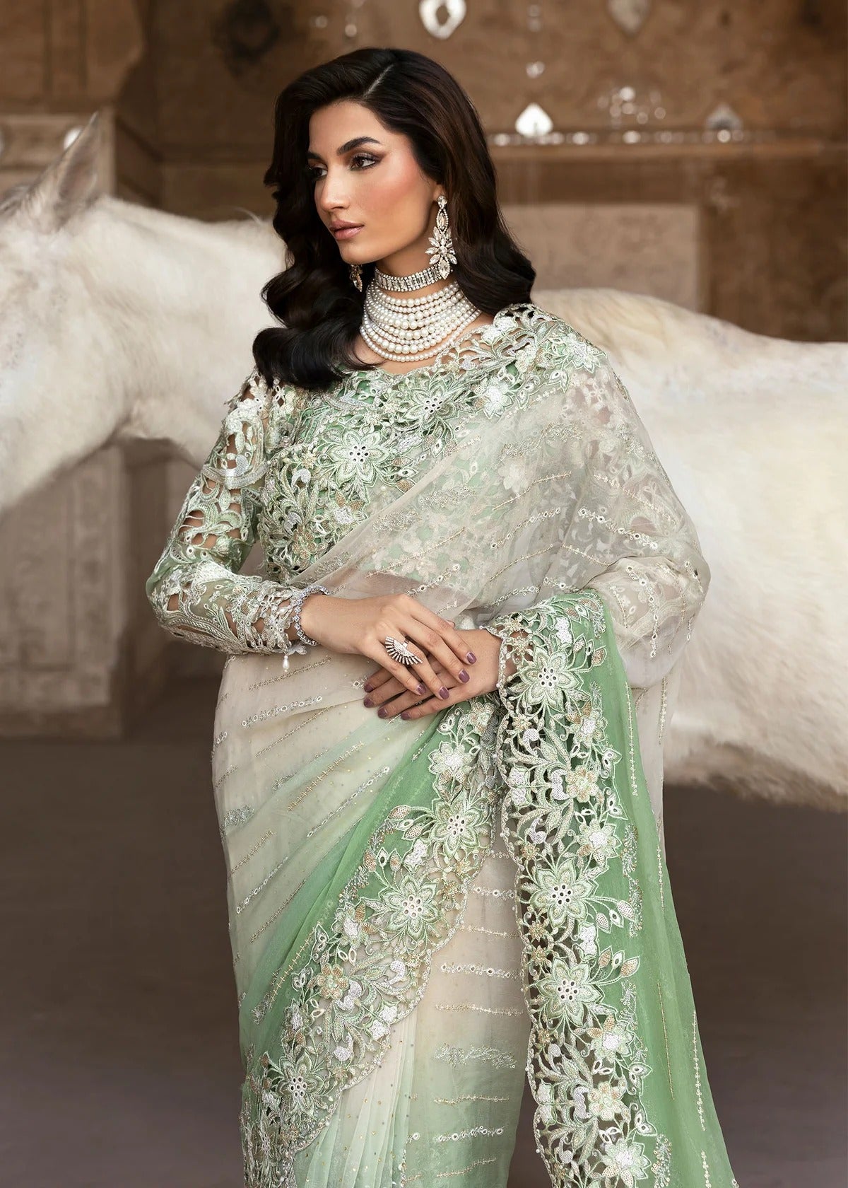 Blouse:Embroidered Organza Front Blouse with Luxury Hand Embellishment, Cutwork &3D FlowersEmbroidered Organza Back Blouse With CutworkEmbroidered Organza Sleeves with CutworkSaree:Gradient + Embroidered Chiffon Saree Fall With DiamanteesEmbroidered Organza Pallu Patch...