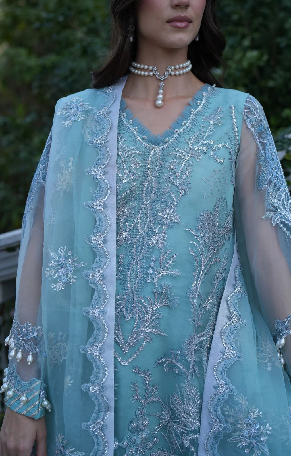 THREADWORK AND SUBTLE SHIMMER. THE AIRY SILHOUETTE AND DREAMY SHADE MAKE IT IDEAL FOR