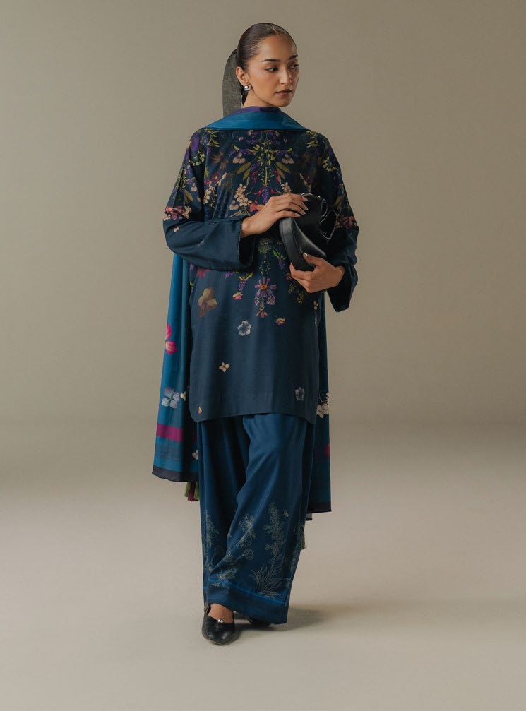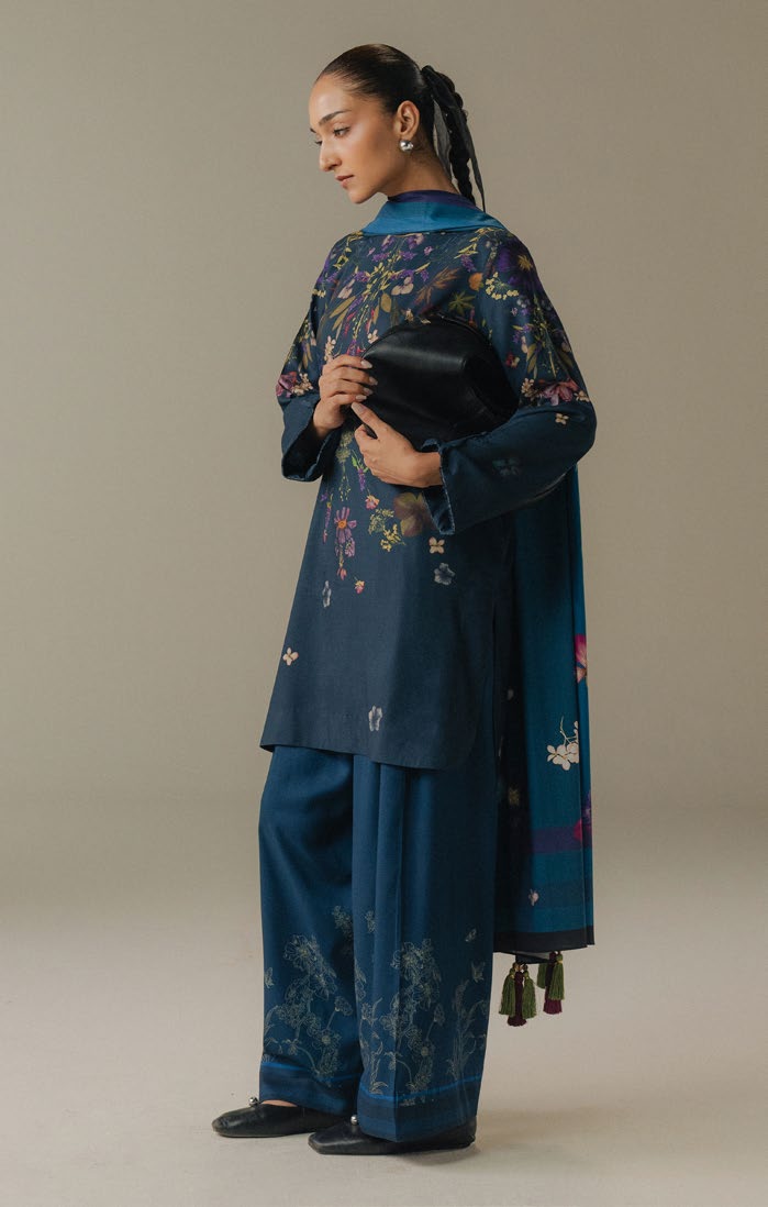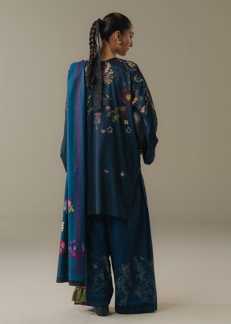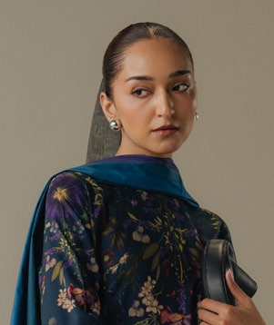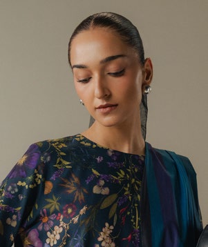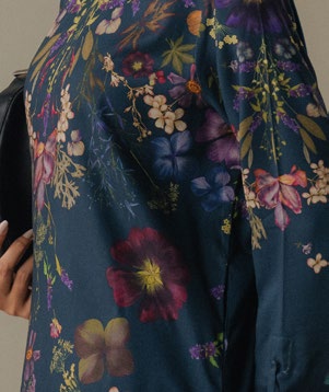 adorned with delicate floral patterns. The look is completed with an atlantic deep shawl