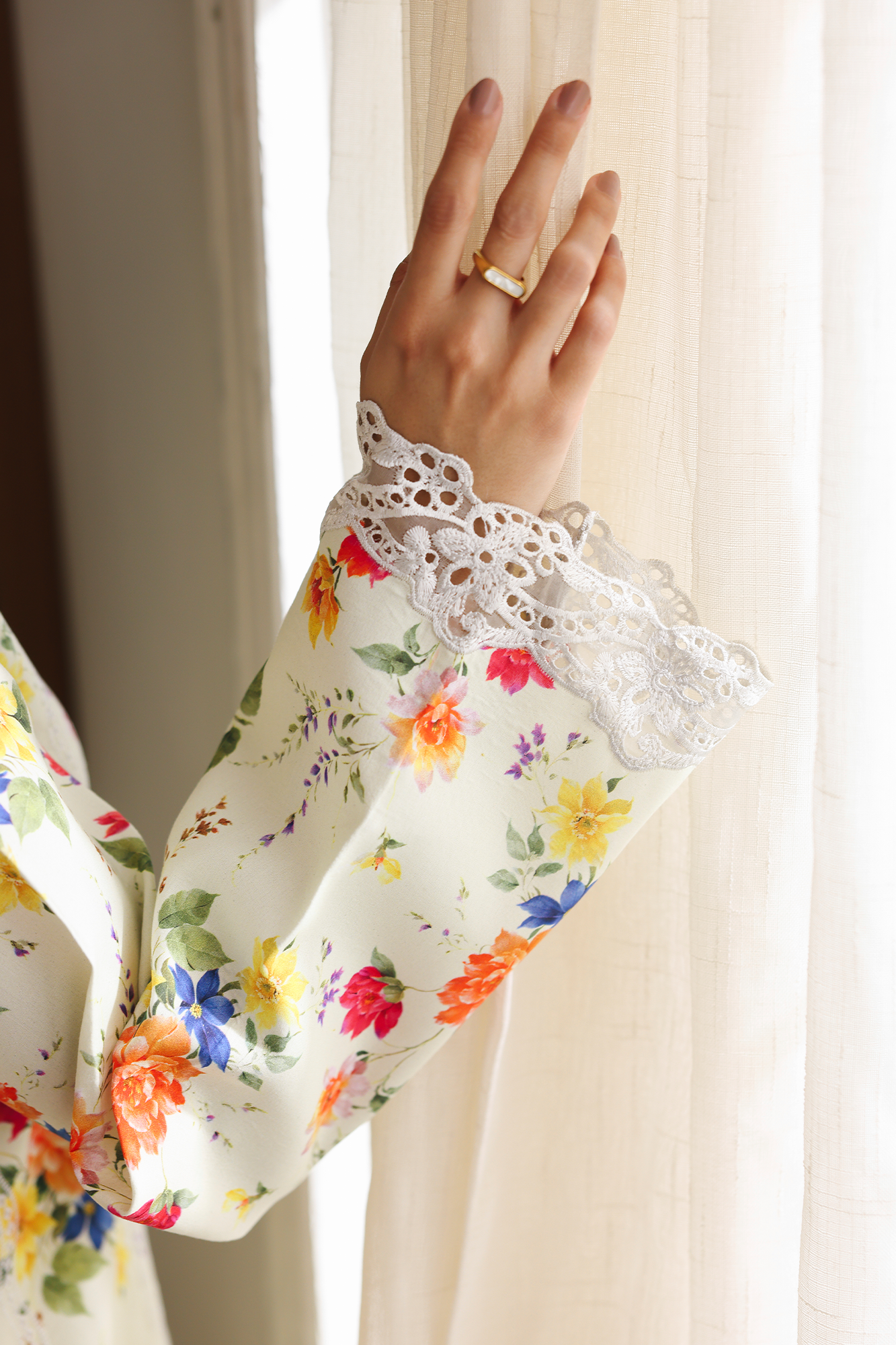 Digitally printed sleeves and back create a balanced floral aesthetic, while embroidered borders on the sleeves and hem provide a polished finish. Paired with a digitally printed cotton trouser for breathable comfort and completed with a premium digitally printed voil dupatta, this ensemble is perfect for casual outings, daytime gatherings, and daily summer wear.