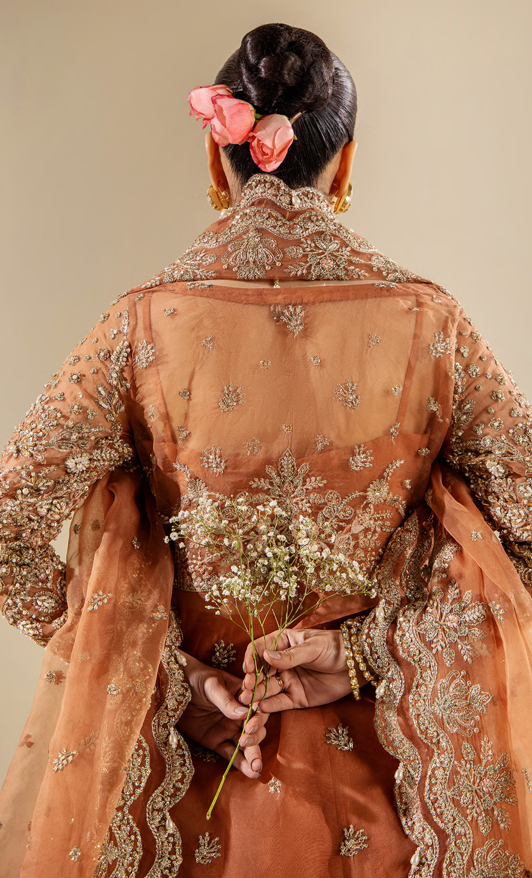 • Hand-Embellished Embroidered Sleeves Border